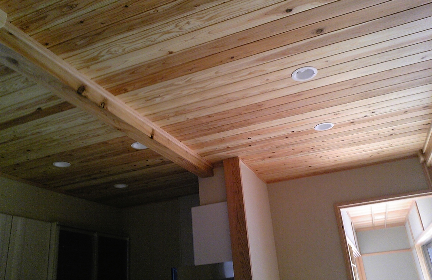 国産無垢材が空間をやさしく包み込みます。湿度の調整、ホルムアルデヒド対策、防カビ、防ダニ等に最適な無垢羽目板です。