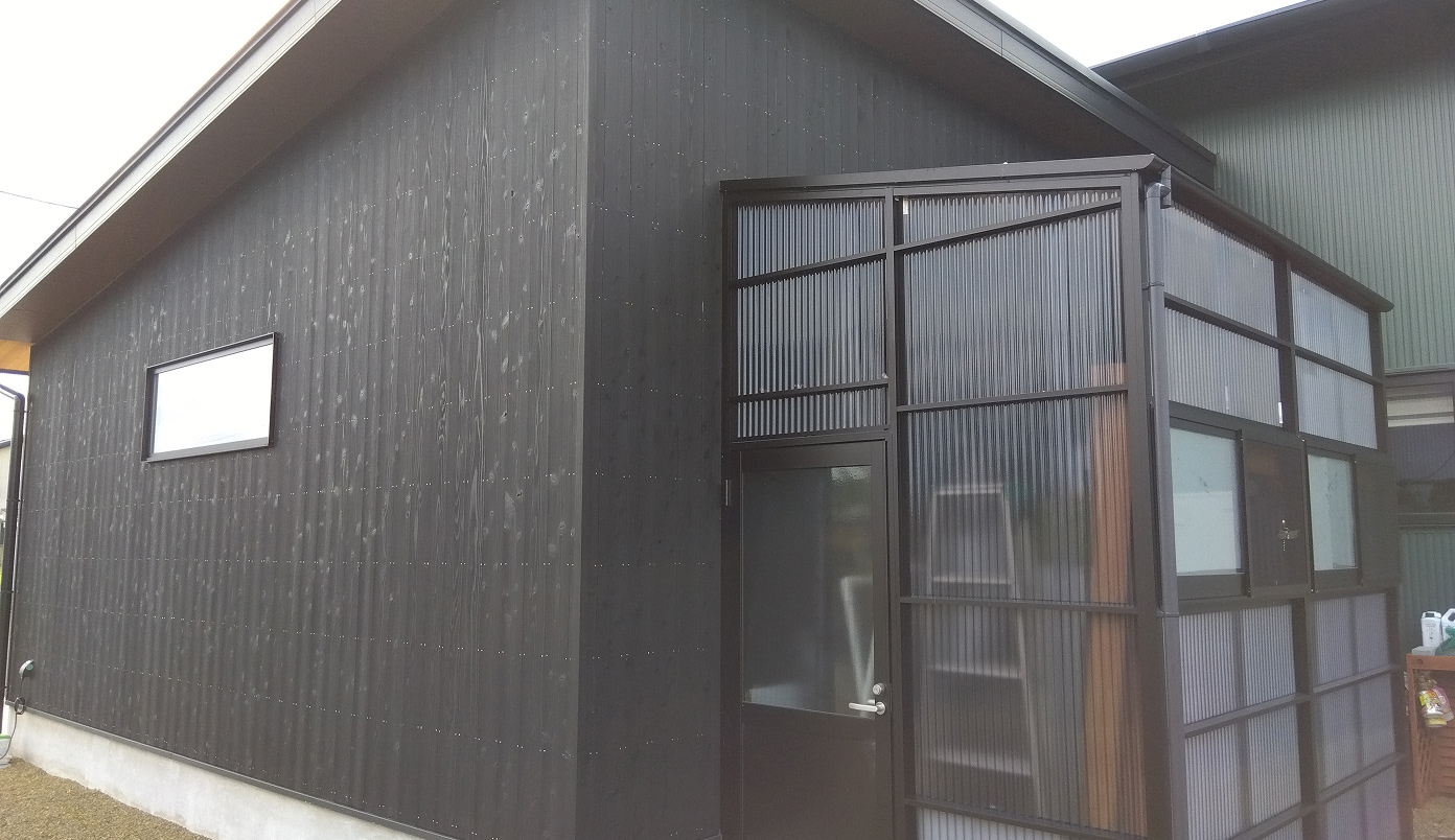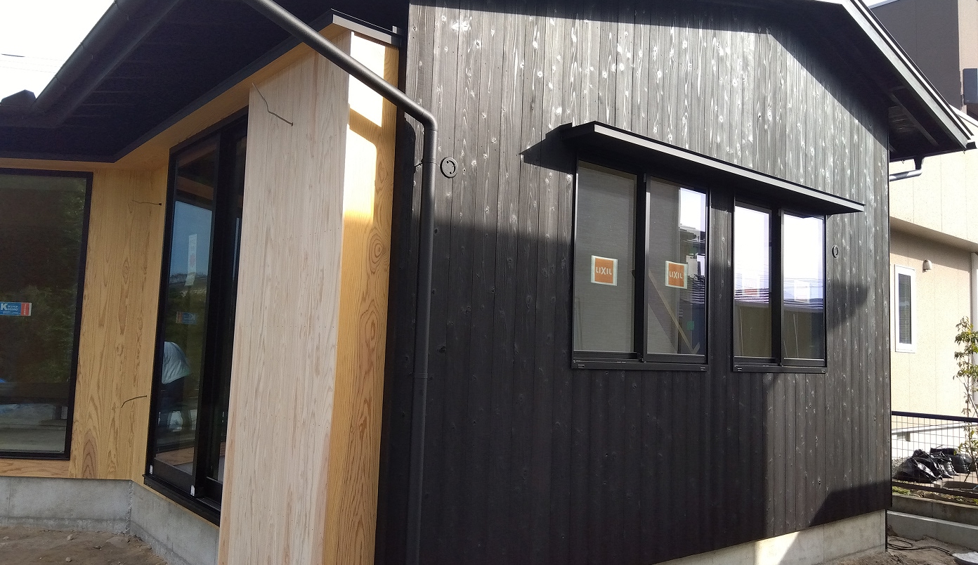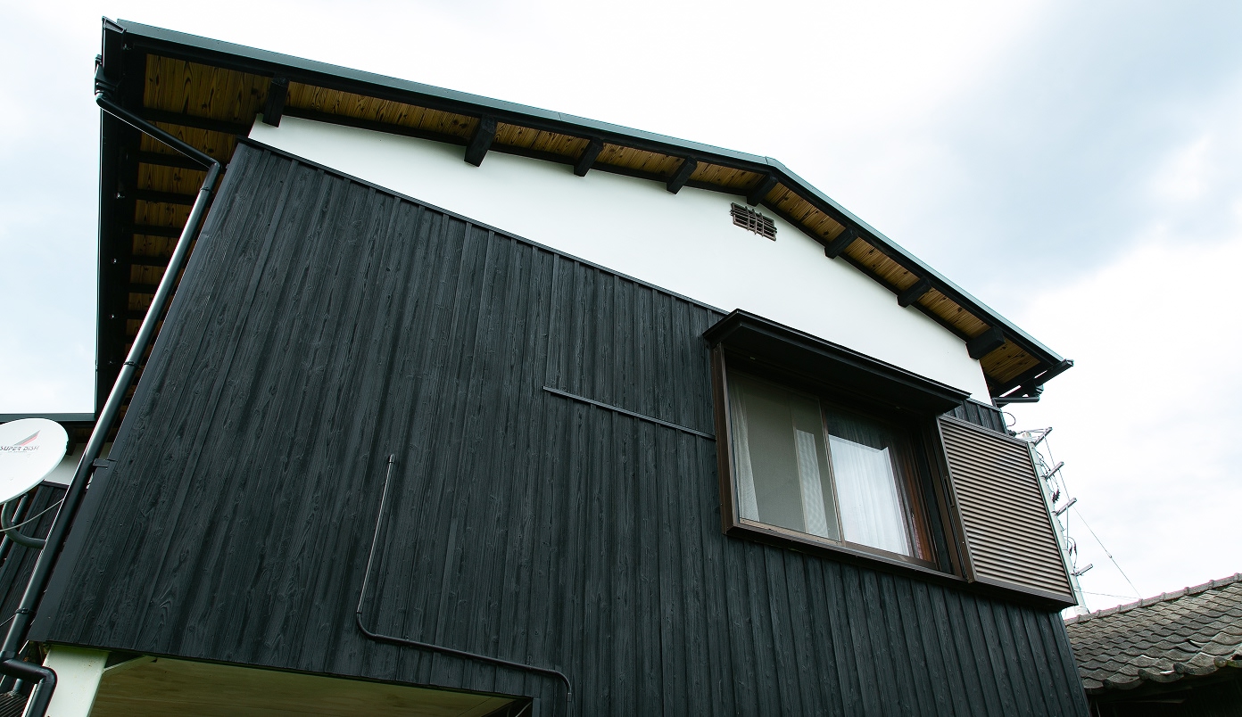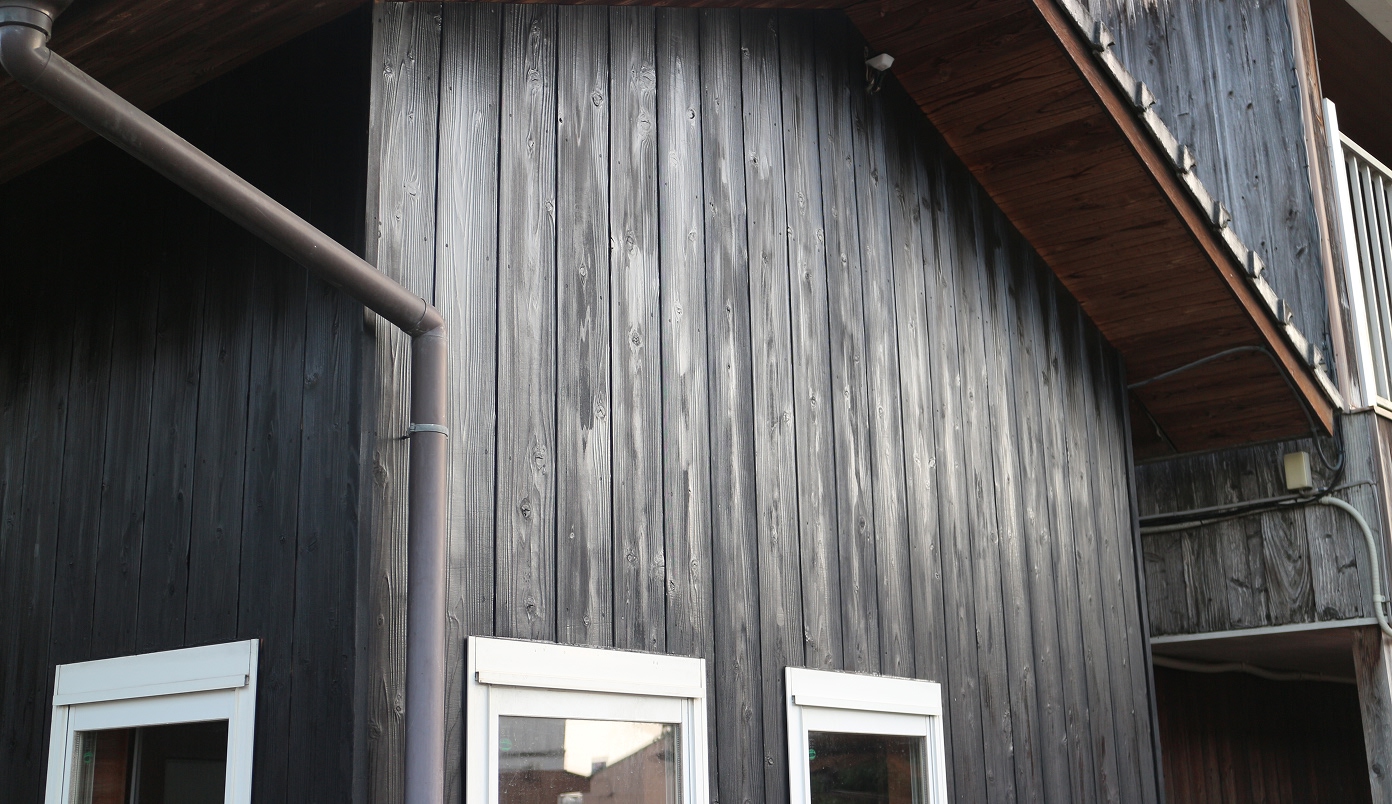 日本の伝統的な外壁用材。敢えて杉の表面を焼く事で、独特の落ち着いた風格を持つだけでなく、耐火性、耐久性が向上しています。水性塗料仕上。