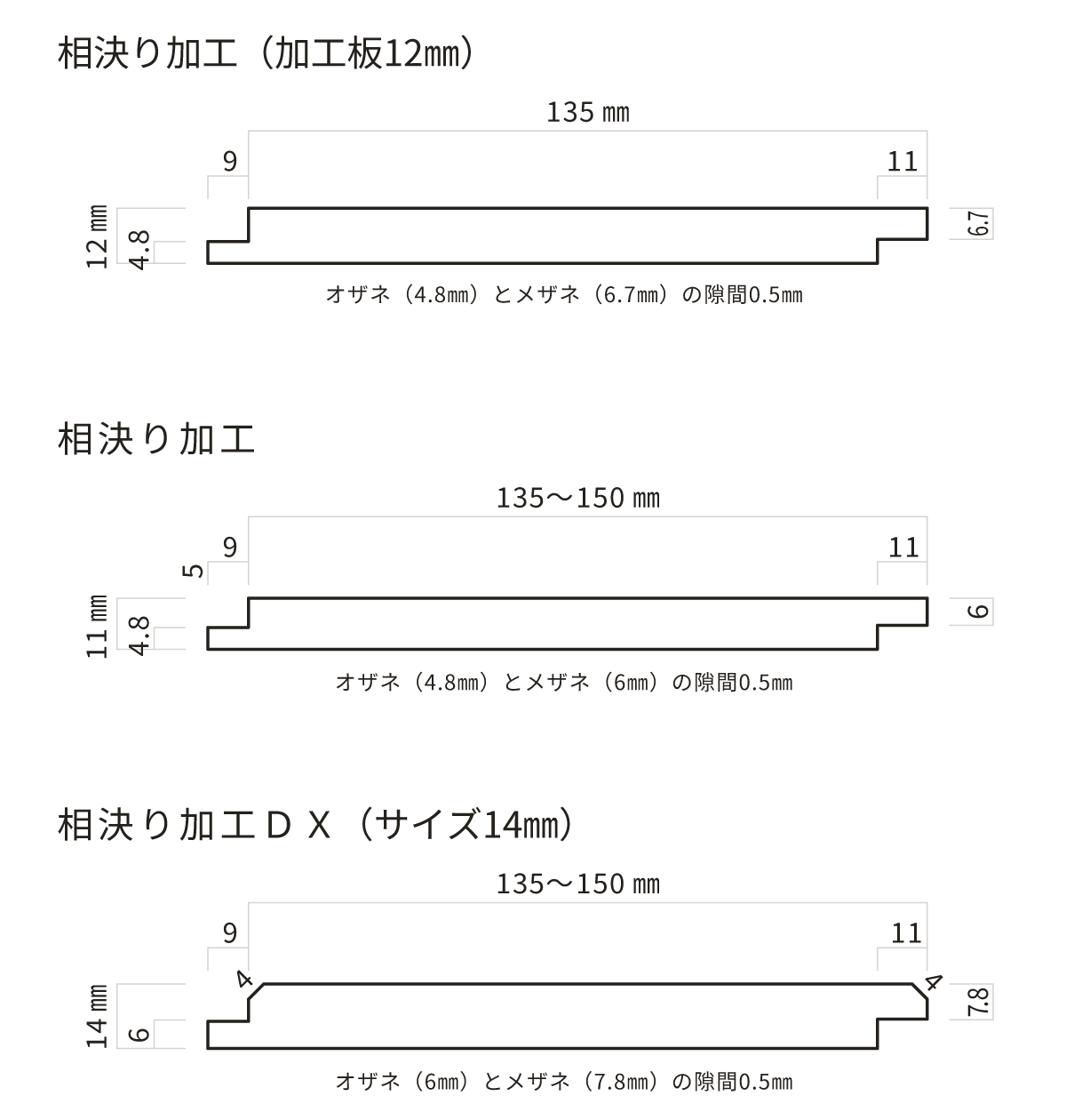 焼杉は、通常品は全て相決(あいじゃくり)加工となります。